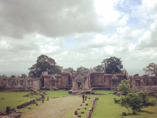 シェムリアップから車で3時間、タイとの国境近くまで行くのですが、私も同伴者も1番気に入った場所です。山の上の遺跡は崩れていましたが、それが良い雰囲気を醸し出してギリシャ遺跡を見ているような気分になりました。残っているレリーフを見ると、牛に乗るシヴァ神が残っており、この寺院がシヴァ神信仰だったことが伺えました。寺院の裏側は崖になっており、下の森が見渡せ、風が吹き、爽快で、いつまでも眺めていたかったぐらいです。日本では安全の観点から絶対そこまで行かせてもらえない崖の先まで行くことが出来ました笑。山の上なので坂が多く、健脚なほうが良いかもしれません。ただ、アンコールワット周辺の3遺跡を1日で巡るコースよりはゆったりと出来て、疲れも軽かったです。行き帰りの車の中では、タイとの戦争の話や高床式家の話やおばけの話まで、色々とガイドさんに聞けて、疲れたら車で寝られたので、そんなに苦ではなかったです。体力的にはもう1つ近くの遺跡巡ってもよかったかな、と感じました。