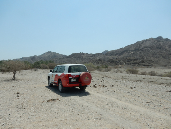 なお、アクティビティの写真にあるように、ランドクルーザーでないと行けないような荒れた山道(おそらくワジ(涸れ川)を兼ねた道)を通りますが、水のあるところを渡るような写真は雨期のタイミングのよい時と思われます。(今回は乾季なので、そういう箇所はありませんでした。)