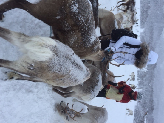 その後はトナカイ牧場に行き、トナカイを見たり食事。(その間に、次の4人がスノーモービルに)