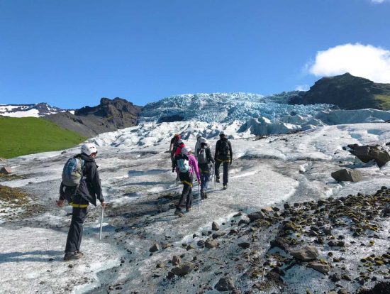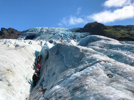 初めての氷河ハイキング。7月に参加しましたが天気も最高で、雪崩がそのまま固まったような迫力の氷河の上のハイキングを思う存分堪能できました。先導してくれたガイドのダンさんが、氷河を歩く上での大切な注意事項はもちろん、アイスランドの自然や氷河、歴史や地理、伝説など興味深い話をしてくれて、あっという間のひと時でした。氷河ハイクに必要な用具は一式貸し出してもらえます。自分たちではなかなかできない体験ですし、青く輝く氷河を間近で味わえるこのツアーは絶対おすすめです!