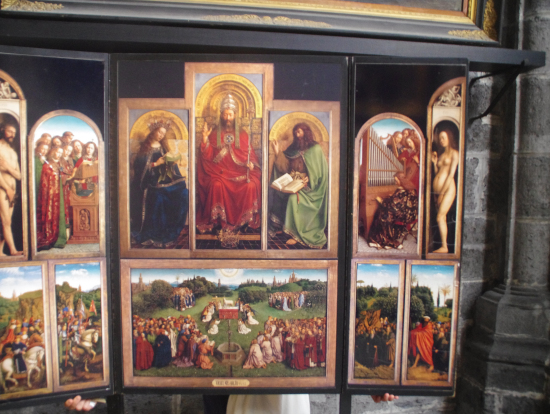 もちろん定番の聖バーフ大聖堂の中に入り、「神秘の仔羊」の見学をしましたここは残念なことに写真撮影禁止です。しかし外に出てしばらく進んだところに複製が置いてあり、ここは写真撮影も大丈夫なようです。