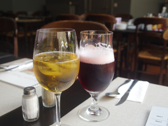 たどりついた最初の広場で解散、各自ランチタイムになります。たまたま目についた、すぐそばのビバルディというレストランに入ったのですが、後で調べてみたらここは有名なレストランでした。料理もおいしかったのですが、ドリンクが絶品でした。オレンジジュースもおいしかったですが、話の種にと頼んでみたチェリービールが絶品でした。アイスティーを頼んだらなんと炭酸のアイスティーでした。これまたとてもおいしかったです。