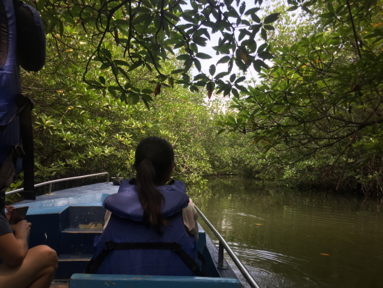 他のツアー客と一緒に小型ボートでマングローブの森林へ。英語ガイドなので会話するのは難しかったけど、ここに動物がいるよ、こちらも写真を撮ってほしいなどはジェスチャーと雰囲気で伝わりました。かなり奥深くまで入って行き、広大な自然に驚きました。