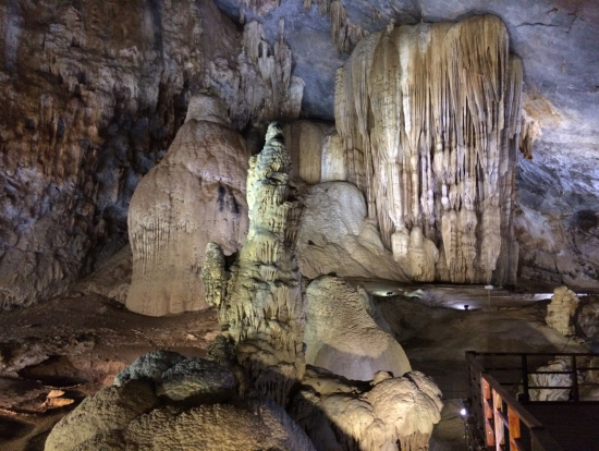 フエは雨季のためフォンニャ洞窟ツアー催行がなく、フォンニャ洞窟から車で約40分の天国の洞窟ツアーに参加しました。迎えが来たら参加者は私一人。一人だと料金が倍になるので、がっくり。雨季のためか日本人観光客は少ないそうです。片道5時間はこたえるが、天国の洞窟は素晴らしかった。約10年前に発見され、つい最近公開されたばかりです。今まで秋芳洞やニュージーランドのワイトモ洞窟など多くを見ましたが、これだけスケールが多く、様々な奇岩がある鍾乳洞は見たことがありません。2日前にハロン湾の島にある洞窟を見ましたが、ここに比べるとちゃちなものです。10分ほど坂道を登りますが、雨は気になりませんでした。洞窟はまだ全貌が明らかになったわけではなく、調査が進めばもっと人気が出るでしょう。往復11時間て、一人参加料金400ドルは痛かったが、それだけの価値はあります。途中の田園風景も印象的でした。