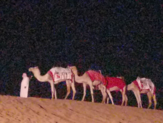 キャンプサイトに到着したときはまだ明るく、ラクダに乗ったりヘンナペイントをしていただいたり、そのうちに日が落ちてラクダを見送ったり。