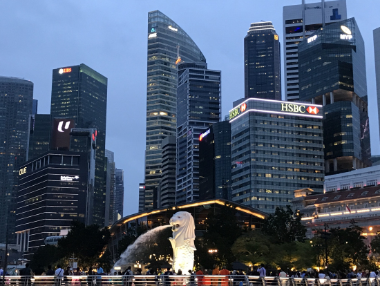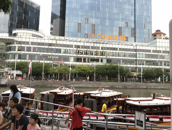 リバークルーズは最後尾の席がおススメ。20分ほどリバークルーズを楽しみます。マリーナベイの高層ビルにマリーナベイサンズ、マーライオンと楽しめます。