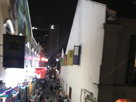 ショーが終わるとオープントップバスに乗車です。2Fの後方席がおススメです。バスのアナウンスが英語です。日本語で街並みの紹介と合わせて夜景を楽しみたい方は要検討かなと思いますが、もちろん夜景は楽しめます。途中ハジレーンというアラブ街で下車してストリートを歩きながら楽しんでもいいですし、そのままバスに乗っていてもOKです。ストリート下車組みも道の反対側まで歩いてきたらまたバスに乗り込みます。主にマリーナベイ、シティ、シティホール、ブギス、アラブ街を走り最後はクラークキーでオープントップバスは終了です。
