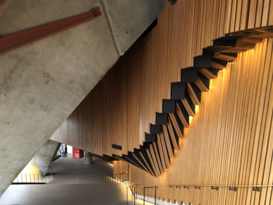 オペラハウスの中に入ってすぐにある階段はメキシコのマヤ遺跡からイメージされたとのこと。上がるたびに現実から非現実へと導いてくれるというこの階段は、天井や壁のデザインも見事な美しさでした。外からだけではわからないオペラハウス、中の繊細さも感じられて参加してとてもよかったと思います。