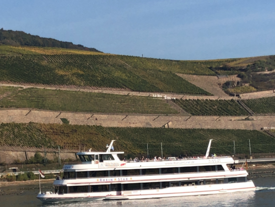 フランクフルト中央駅からリューデスハイム までのチケットを駅のインフォメーションで買い電車で行きました。着いたら駅を背にして右に10分強歩いて行くとフェリー乗り場があるのでそちらでバウチャーとチケットを引き換えます。時間があったので街を少し散策しました。残念ながらリフトには乗れませんでした。