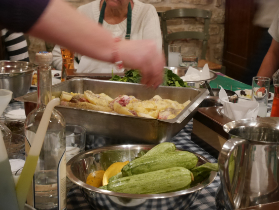 それを想像している方にはちょっと期待外れかもしれません。また、基本的に素手で全員分の食材の下準備を行いますので、そういうのが苦手な方にもあまりおススメできません。反対にギリシャ食材について真剣に勉強したい方には深い話が色々聞けるので面白いと思います。私自身ヨーロッパ食材の輸入会社に勤めており、今回初めてギリシャに来たついでにギリシャ食材の知識を深めたいと思って参加したので、大変参考になり色々勉強することができました。もちろん雰囲気は和気あいあいとしてますし、異文化交流もできましたので、そういう意味でも楽しむことができました。