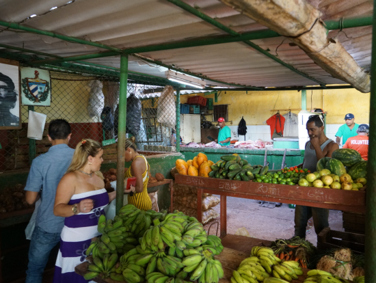 伝統的なキューバ料理を作ってもらうのを見学しつつランチを共にいただきます。市場や食品スーパーに買出しに行き、カサのキッチンを借りて調理します。