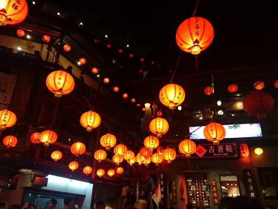 夜の九份は、大型バスでくる団体ツアーの方も多く、人ごみで友達と横に並ぶこともできず押し流されていくような場所もありました。笑