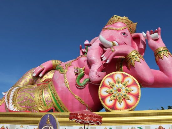 バンコクフォトジェニックツアー完全版!ピンクガネーシャ+ワットパクナムへ エラワン博物館+青いラテ+パッタイランチ付きプラン有<午前or1日/日本語ガイド>★★★★★