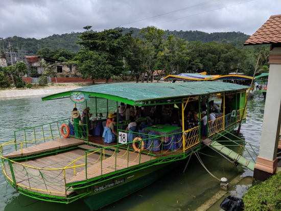 次に、血盟同盟碑に寄って写真撮影してから、ロボック川のランチクルーズ。ブッフェ形式のランチですが、フィリピン料理中心で美味しかったです。