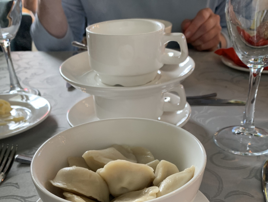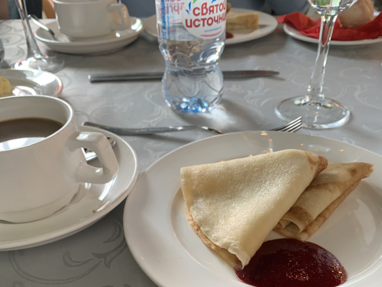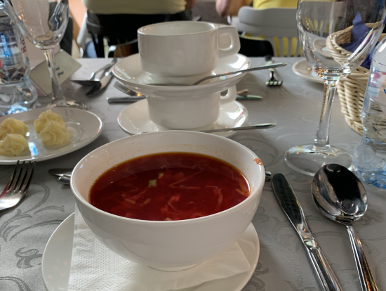 お昼は ボルシチ・ ロシア風水餃子・ロシア風クレープと 代表的なロシア料理でした