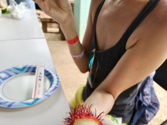果樹園ではガイドのYumiさんとても親切且つ分かりやすくお花やフルーツについて解説してくれます。1時間くらい回った後はおにぎり&フルーツタイム!20種類くらいの珍しいフルーツを手際よく切ってくれます。これ以上食べれないってくらいフルーツを食べさせてくれます。