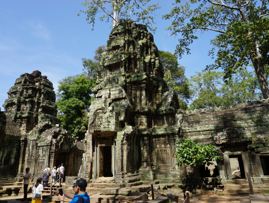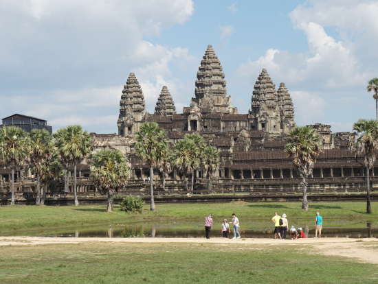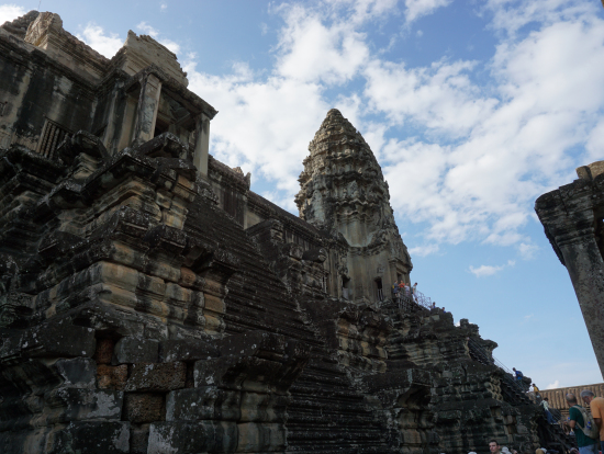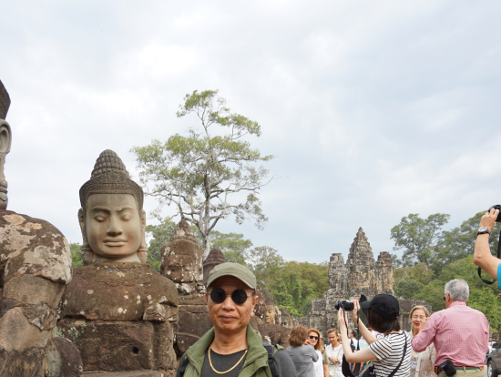 ツアーガイドさんの説明を聞きながらアンコールトムから回りました。日本のお笑い芸人さんに似た顔があるとガイドさんが言ったときは、実際に見てなるほどと思いました。アンコールワットは川のあるほうから歩いて入っていくと奥のほうに聳え立っていました。ここも説明を聞きながら、第一回廊から第二回廊、寺院の中心部、水を処理する池、当時の人のこだわりや工夫を見ながら第三回廊へ、最上階からは景色が一望できて最高でした。
