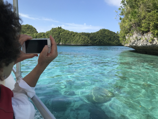 やかで、ボートは私達がロックアイランドの島々の絶景に見惚れている間にペリリュー島の小さな北波止場に着きました。