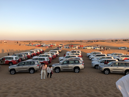沢山の車が集合、30分程度、砂漠を走りました。夕陽鑑賞15分程度した後、キャンプ地へ、