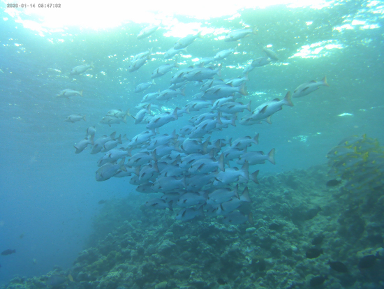 出現する魚は沢山いますが私が見たのはマンタ、ハンマーヘッドシャーク、ナポレオンフィッシュ、アオウミガメ(4回ほど遭遇。ゼロ距離で泳げました)等です(写真参照)