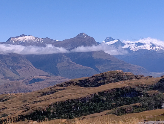 1月下旬~2月上旬の大雨で、橋も小屋も✕、ルートバーンクローズの代替がワナカ湖近くのダイヤモンド湖を見下ろすロッキーマウンテン周回トラック。700㍍以上ある山頂からの眺めは最高!ニュージーランド第4位のワナカ湖を見下ろす雄大な景色、南アルプスの山々やMtアスパイアリングの氷河を眺めながらの昼食も格別。下山後はブラックピークなどの見渡せるワナカ湖畔を散歩したり買い物したりの時間もあり、とても楽しめた。