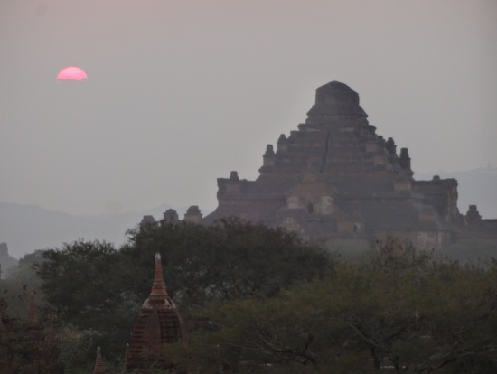 ニャウンウーに取ったホテルに朝迎えに来てもらい、ガイドは他の方の体験談でも評判の良いミンミンさん、運転手はサンサンさんでした。ミンミンさんは英語が堪能なのですが、日本語も上手でツアー中もいろいろと気を使ってくれてこちらのペースに合わせて回ってくれますので、全日のツアーですが疲れずに回ることができます。車のチャーターでも回れなくはないですが、各寺院で説明を聞きながら回った方が良いと強く思いました。撮影スポットも教えてくれるので良い写真が撮れますし、バガンの観光スポットを効率よく回ることができますので時間が無い人に一押しです。ツアーによくある予定外の土産物屋に無理やり連れていかれる事もなく(ショッピングに興味のある人はこちらが希望すれば漆工房等案内してもらえるようです)、食事もメインを魚や牛・鶏等希望を聞いてくれるので昼食・夕食とも美味しく食べる事ができました(ミャンマー料理は日本人の口に合うと思います)。ペットボトルの水も準備してくれていたので自分で持っていく必要がありませんでした。