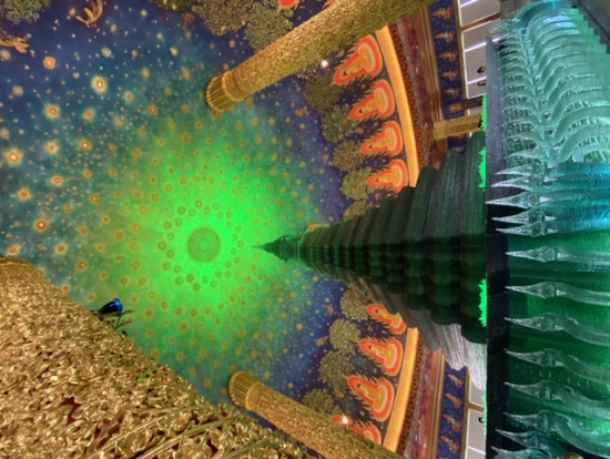 次にワットパクナムですが、最上階の天井画は正に神秘的な美しさで、ただただ見上げるばかりです。それ以外にも、さまざまな仏像(生まれた曜日に決められた形の仏像があります)や高僧の像など、さまざまな収蔵品があり、それらについてもしっかりと説明してもらえるので、インスタ映えスポットという点以外でも楽しむことができました。写真についても、さすが多くの観光客を案内しているベテランガイドだけあって、素晴らしい構図で、美しく、また、礼を失することがない作法での記念写真を撮影してもらえます。(ツアー参加者以外の観光客まで写真を撮ってくれる気の良いガイドさんでした)