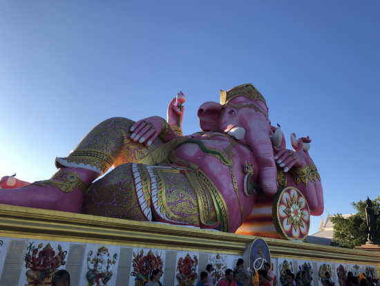 バンコク郊外のフォトジェニックな二箇所を効率的に回れて良かったです。ワットパクナムは幻想的な宇宙を見ているようでとても綺麗でした。ピンクガネイシャは、単体としては良いと思いますが、そのお寺には色んな銅像が目白押しで、中にはアニメの主人公など全く関係のない像が多くあり、観光地化していました。そこがちょっとげんなりしましたね。