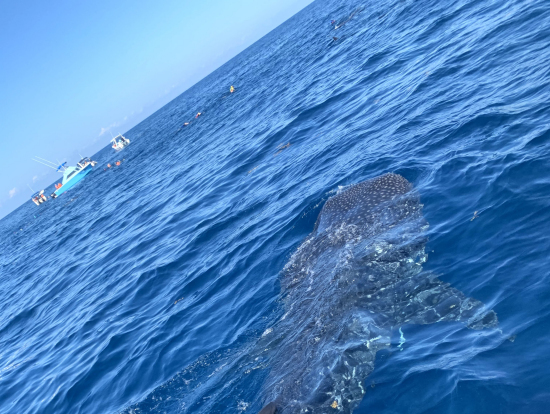 ジンベイザメと泳ぐといっても、それほど距離が近くないのかと思いきや優秀なガイドさんのおかげで触れるほどの距離で泳げました。※ジンベイザメには触ってはいけません。