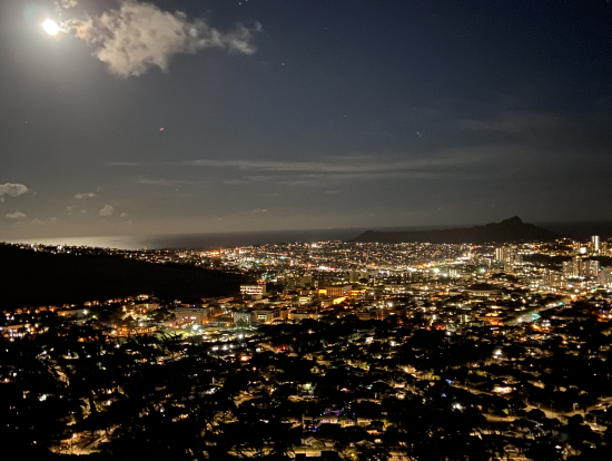 ダイアモンドヘッドをはじめ、アラモアナセンターなど自分たちがその日まで観光した場所が一望でき、尚且つその日はフルムーンだったので本当に綺麗でした。