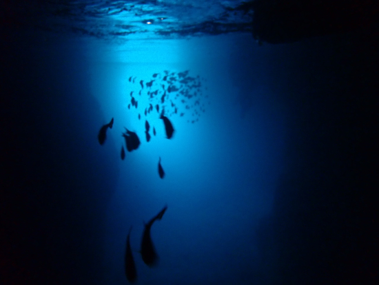 水面には少しまだ軽石がある状態でしたが、行った日はティファニーブルー的な青の洞窟で綺麗でしたっ!!