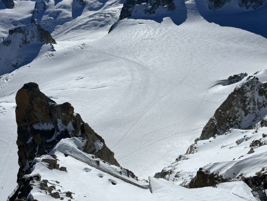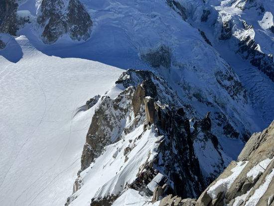 ケーブルカーで エギーユ・デュ・ミディに上がりますが、景色はとても言葉で表すことができないほどです。標高が3800mくらいのため、私はどうやら高山病のため途中で気分が悪くなり他のツアー参加者より先に下山をしました。