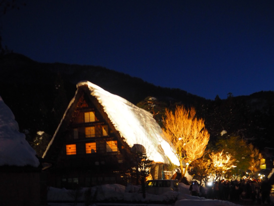 きれいな合掌造り集落の雪景色とライトアップが見られました