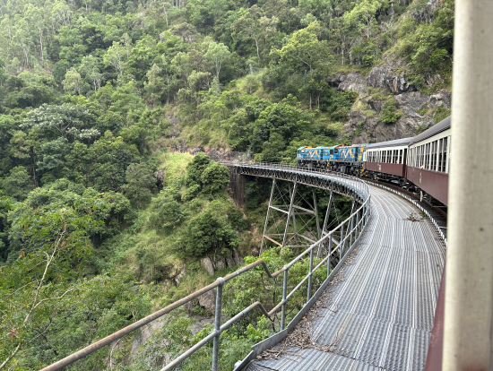 ケアンズ到着初日にこちらのツアーに参加しました。送迎なしプランで9:15発のスカイレール、14:00発のキュランダ鉄道を利用。