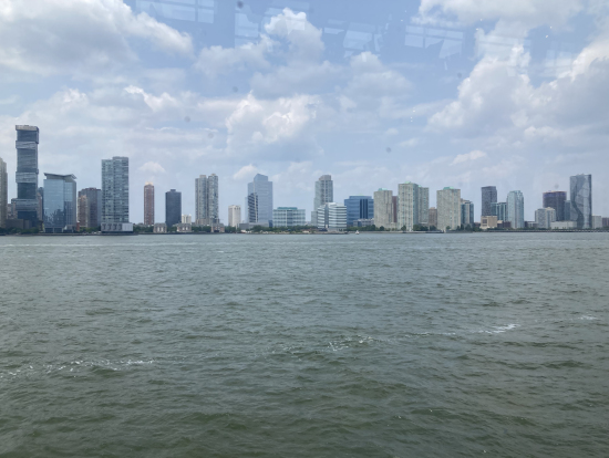 ご飯はバリエーションがあって美味しかったです。ケーキは結構甘かったのであまり量は食べられませんでした。景色を見るために食べてる途中で席を離れると、まだ食べかけのお皿を下げられてしまうので注意です(笑)。揺れはまあまああったので、酔いやすい方は酔い止めがあった方がいいかもしれません。自由の女神はマンハッタンやブルックリンからは大分距離があり、陸地からはとても小さくしか見えなかったのですが、このクルーズではリバティー島の近くまで行けて、さらに自由の女神の目の前で速度を落としてくださったりしたので近くでじっくり見られて良かったです!
