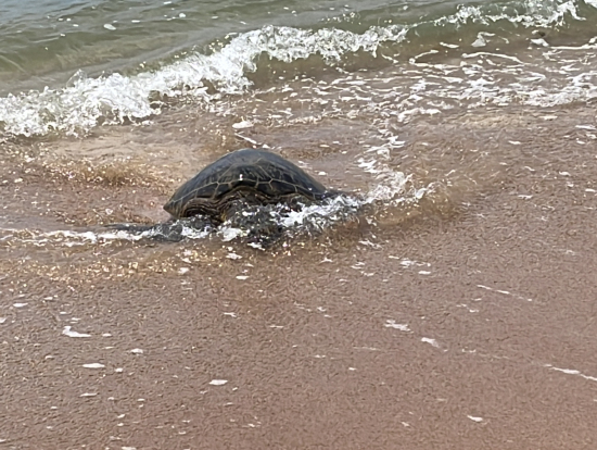 たくさん海の中にもいて、うち1匹が、波に揺られながら陸に上がってきてくれました。