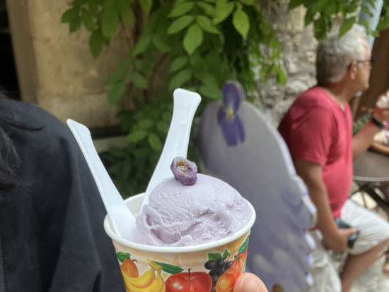 日本発のツアーや個人旅行では行けない小さな村を訪ねることができ、思い出に残る一日でした。南仏は、活気のあるリビエラのイメージが強かったのですが、井上さんにご丁寧なガイドを頂き、小さな村々の生活を知ることで、南仏のもう一つの顔を知ることができました。どの村も個性があって美しく、次に来るときは泊まりたいと思う村でした。スミレの村・トゥーレットのスミレのアイスは一食の価値ありです。