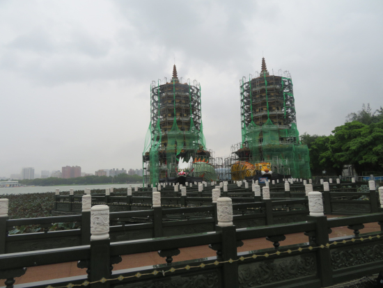雨と蓮池潭の龍虎塔は改修中で残念でした。