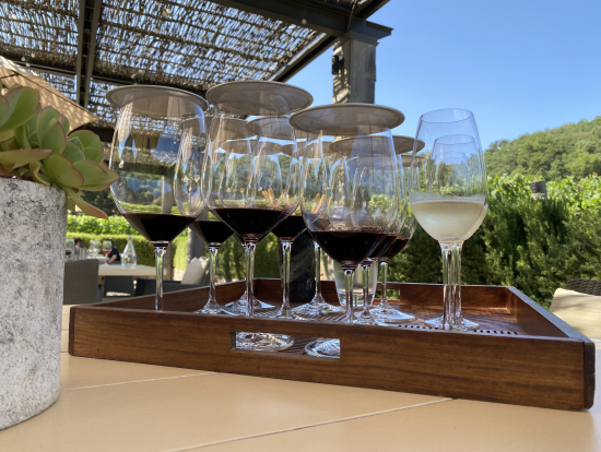 一軒目のワイナリーはオーパスワンです。Napa Valleyの看板からすぐのところにあります。佇まいが優雅で、スタッフの方々がとてもフレンドリーでした。テラスか室内か選べましたが、日差しが強い日だったので、室内にて試飲タイムがスタート。憧れのワインを一口含むと思わず笑みが溢れました。全部で4種類を試飲しましたが、どれも香り高く奥深い味わいで、ただただ"美味しい"を連呼してしまいました。本当に美味しいです。感動ものです。