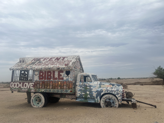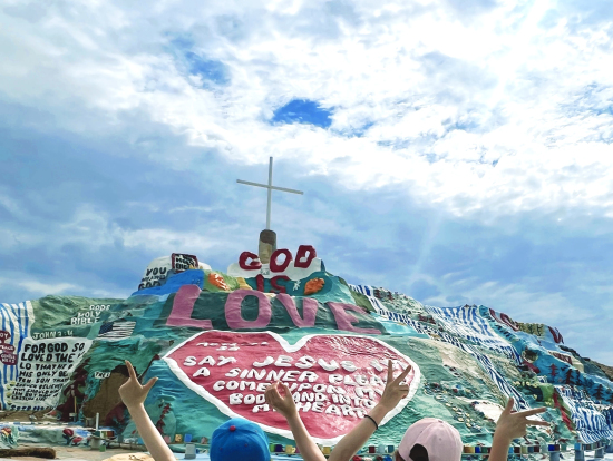 サルベーションマウンテン+イーストジーザス+デザートヒルズアウトレット 1日観光ツアー バーガーショップへの立ち寄りあり<貸切プラン有/日本語ドライバーガイド>★★★★☆