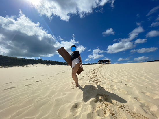 13:15~ 砂滑りの予定だったため、ラウンジ(シャワー完備、ロッカーは$2コインが必要)に着替えなどを預けたあとすぐにバウチャーを使ってハンバーガーを食べました。