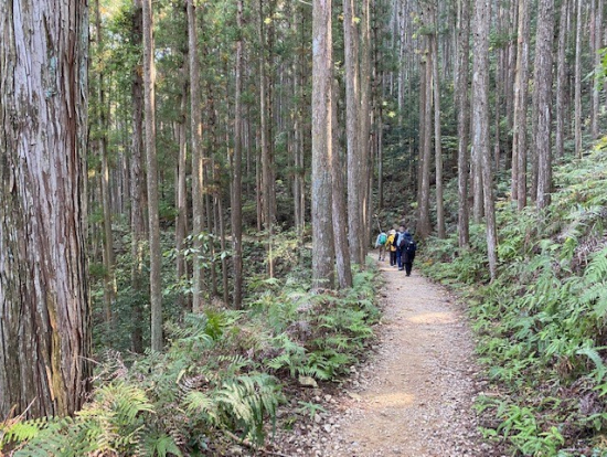 一度は熊野本宮大社を訪れたことがあるがゆっくりと歩いてみたい母と癌療養中の父を連れ熊野古道を歩けるか心配ではありましたが語り部さんについていただき良い時間を過ごせました。歴史や自然について教えてもらい先人たちが憧れ歩いた熊野古道を体感できました。お弁当も美味しかったでうす。途中の温泉コーヒーやこもれびの中を歩くことでリフレッシュできました。途中、父がリタイヤしましたが車が通る道まで案内していただき無事に熊野本宮大社を拝むことができました。ありがとうございます。悔いが残るのは無人販売所でお茶の葉を買い忘れ夢中で歩いてしまったことです。機会があればお茶を飲みたいと両親と想いで話をしております。