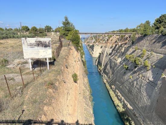 最初に、トイレ休憩とともにエピタウロス運河の見学を橋の上からしました。運河の両脇が絶壁のように削られていて、船が狭い絶壁の間を通っていく様子に驚きました。ミケーネ遺跡は思ったよりとても大きく、周りの風景やとても風が強かったです。途中足場が悪いところがあるので、大理石はとても滑りやすいので、カジュアルな歩きやすいスニーカーを履くことをお勧めします。