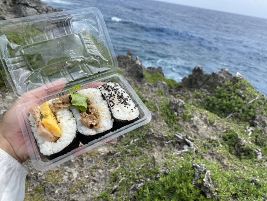 海岸までまたゴタゴタした岩を歩き、到着した場所で太平洋を見ながら食べたおにぎりは本当に最高でした!