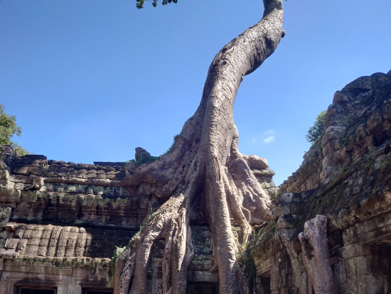 アンコールワットも石の塔の建造物は迫力がありましたし、アンコールトムの彫刻も素晴らしかったし、タプロームの石造物と木々の一体化は、何とも神秘的でした。
