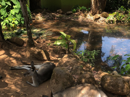 アボリジニ文化体験、ワイルドライフパーク(動物園)でカンガルーにふれあいました。