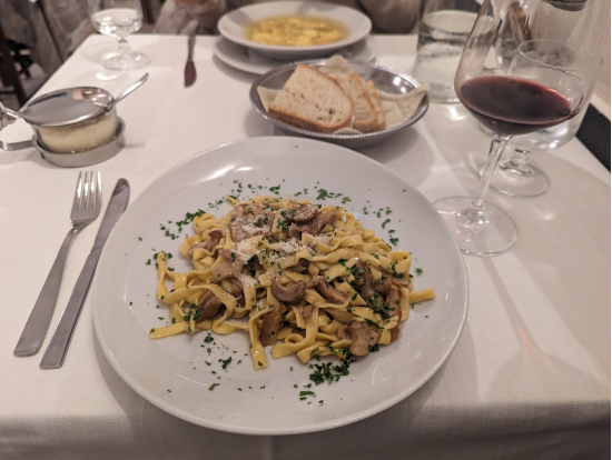 治安が不安だったので頼みました。ヨーロッパの街は夜がきれいなので、夜の街並みを安心して楽しみたいですよね。レストランでは詳しくメニューを説明していただきました。ローマらしいメニューに挑戦!海鮮の前菜、ポルチーニ茸のパスタ、デザートを食べました。パスタは薫りが良くとてもおいしかったです。その後、トレビの泉、スペイン広場を散策しました。昼間とは違い、とても美しかったです。歴史的な背景なども教えていただきました。安心して夜の街を回りたい人やローマらしい食事に挑戦したい方におすすめです。