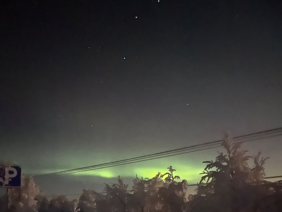 写真にあるようにほんの少しだけ見ることができました。事前にオーロラのアプリで予測できるようで、ガイドさんからも厳しいような雰囲気が漂ってきました。