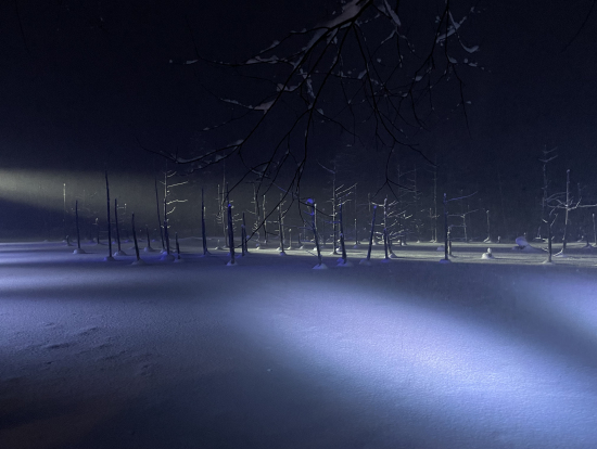 期間限定の美瑛のライトアップすごい綺麗でした。夕方前から雪が結構降って、雪好き息子ははしゃぎまくり。