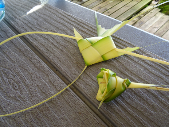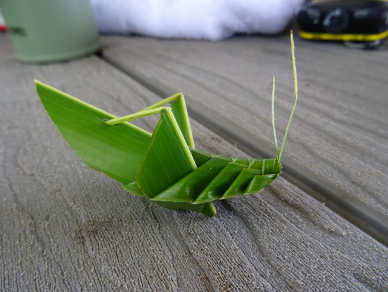 帰りの時間まで、シュノーケリングをしたり、写真を撮ったり、自然を満喫しながら過ごしていると、スタッフがヤシの葉で花、エンゼルフィッシュ、バッタ(すごくリアル)を作ってくれて、嬉しかったです。